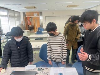 須坂市内の中学校より新入部員2名を迎え、既存のメンバーからは中間発表に向け今取り組んでいることのプレゼンが行われました。