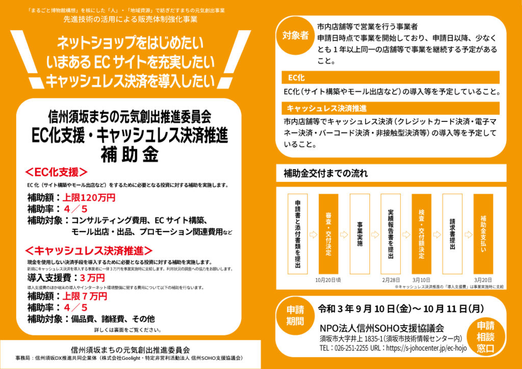 ECサイト支援、キャッシュレス決済推進ともに10月11日(月)厳守でお願いします。